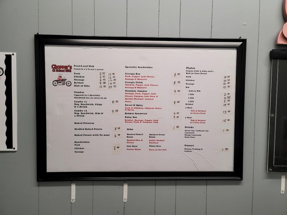 The menu at Chopper's Ol' School BBQ reflects Southern simplicity with generous portion sizes. Key offerings include smoked meats like brisket, pulled pork, and sausage. Each dish showcases smoky flavors, highlighting their slow-cooked methods. Specialties like the Georgia Chick sandwich offer variety for different tastes.